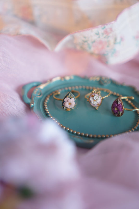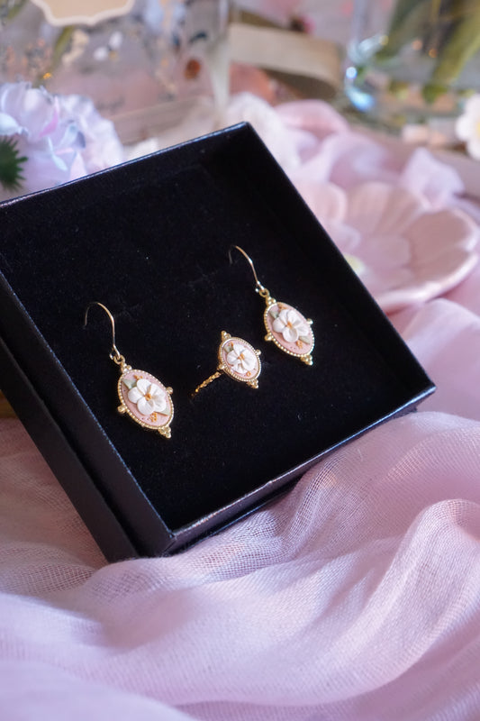 The Eternal Spring / / Conjunto floral (único) pendientes y anillo.
