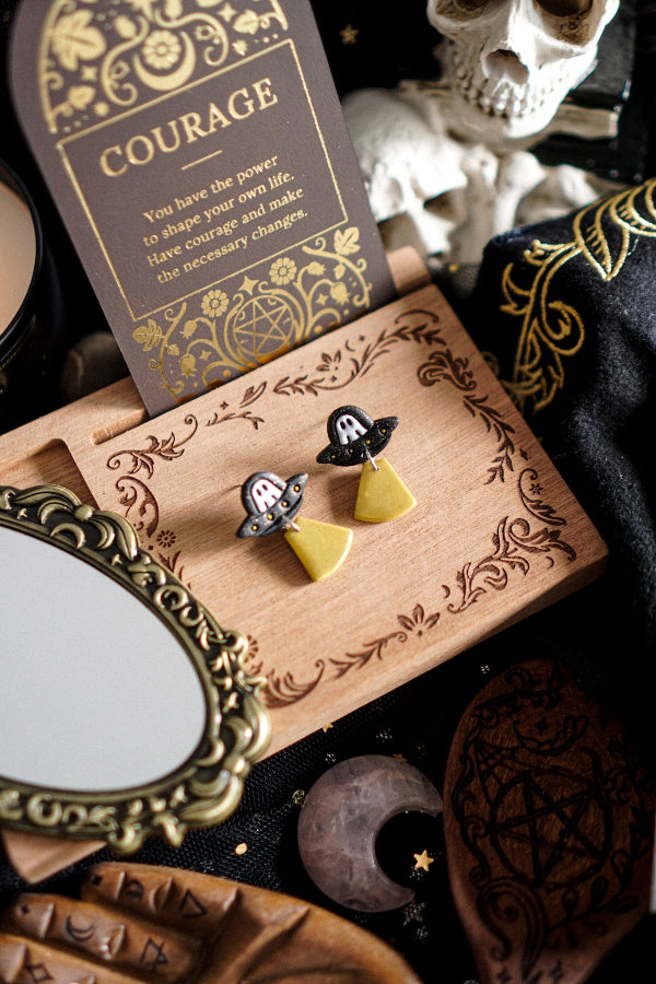 CUIDADOS: Las piezas son de arcilla polimérica y, aunque son resistentes, trátalas con mimo y cuidado ya que se pueden romper de lo contrario. Si te echas colonia o crema hazlo antes de ponerte los pendientes, no rocíes sobre ellos algo que contenga químicos o alcohol. Guárdalos en algún lugar en el que eviten rozarse ni coloques algo sobre ellos. Esto hará que tus pendientes estén contigo muchísimos años.