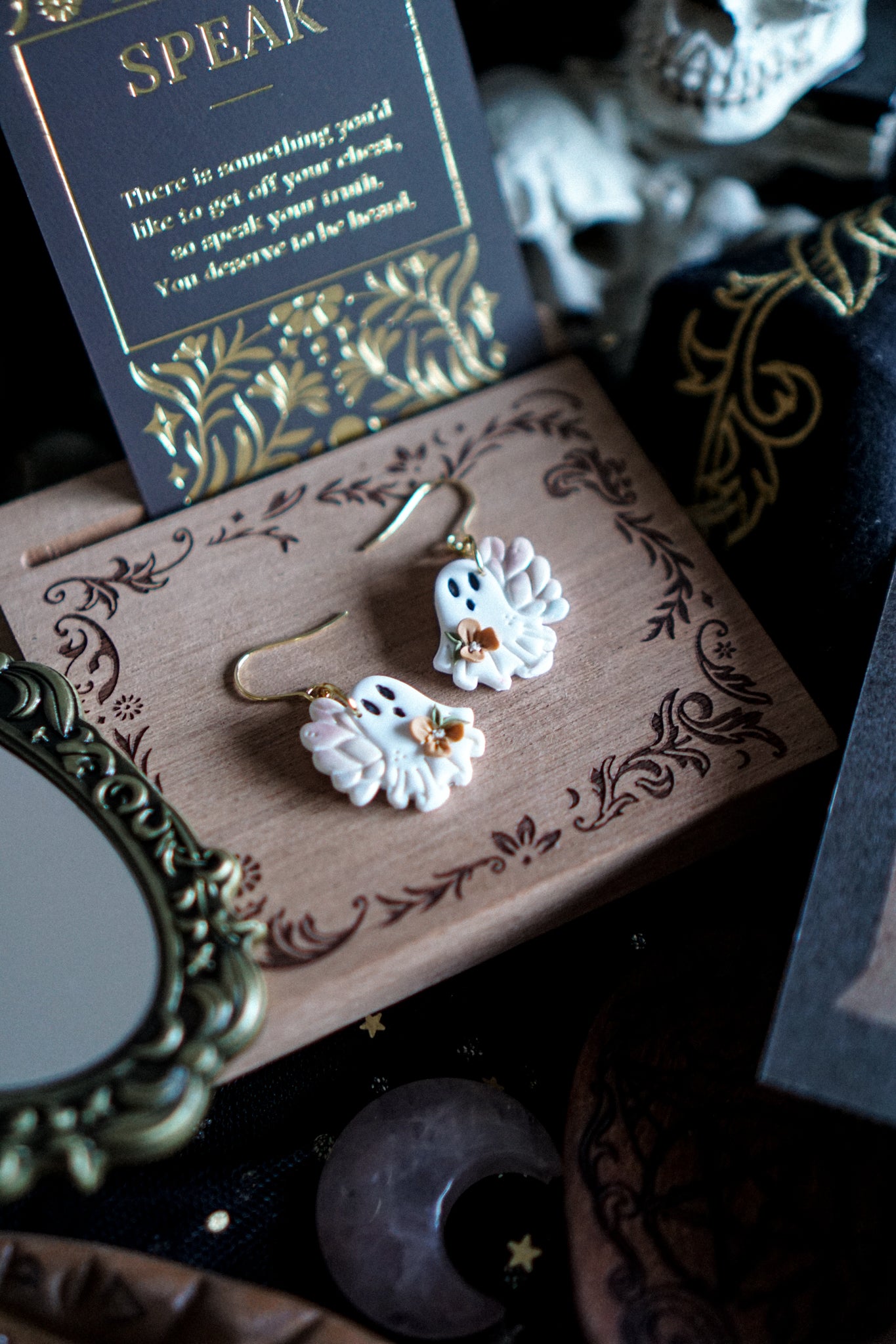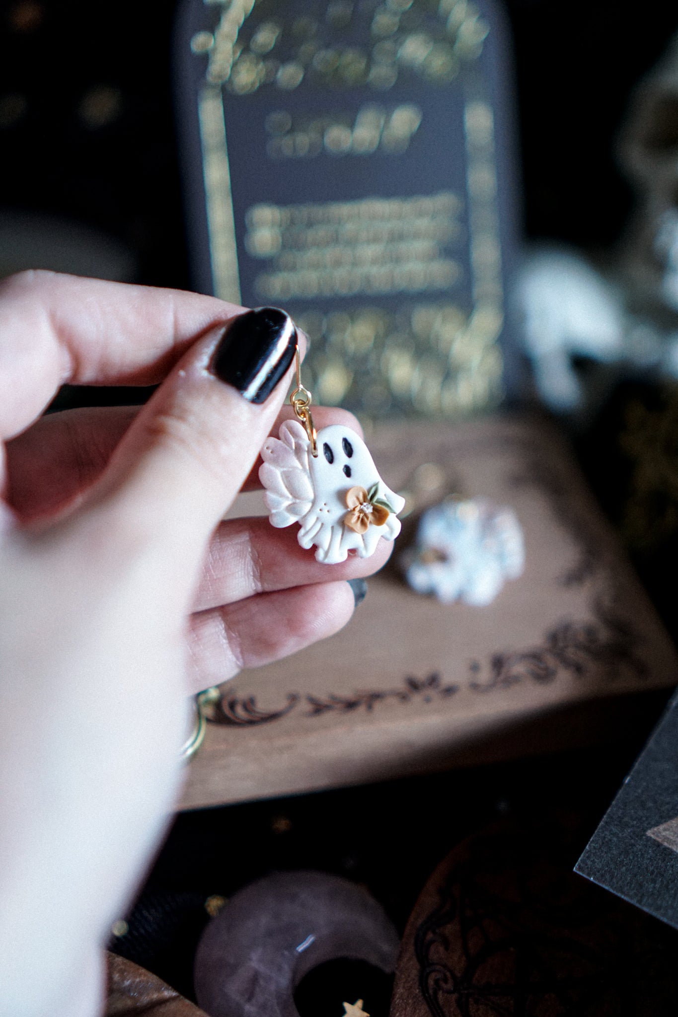 PACKAGING: Lo envío en una cajita de cartón, con papel de seda de motivos spooky, todo es reciclable y no contiene plásticos.