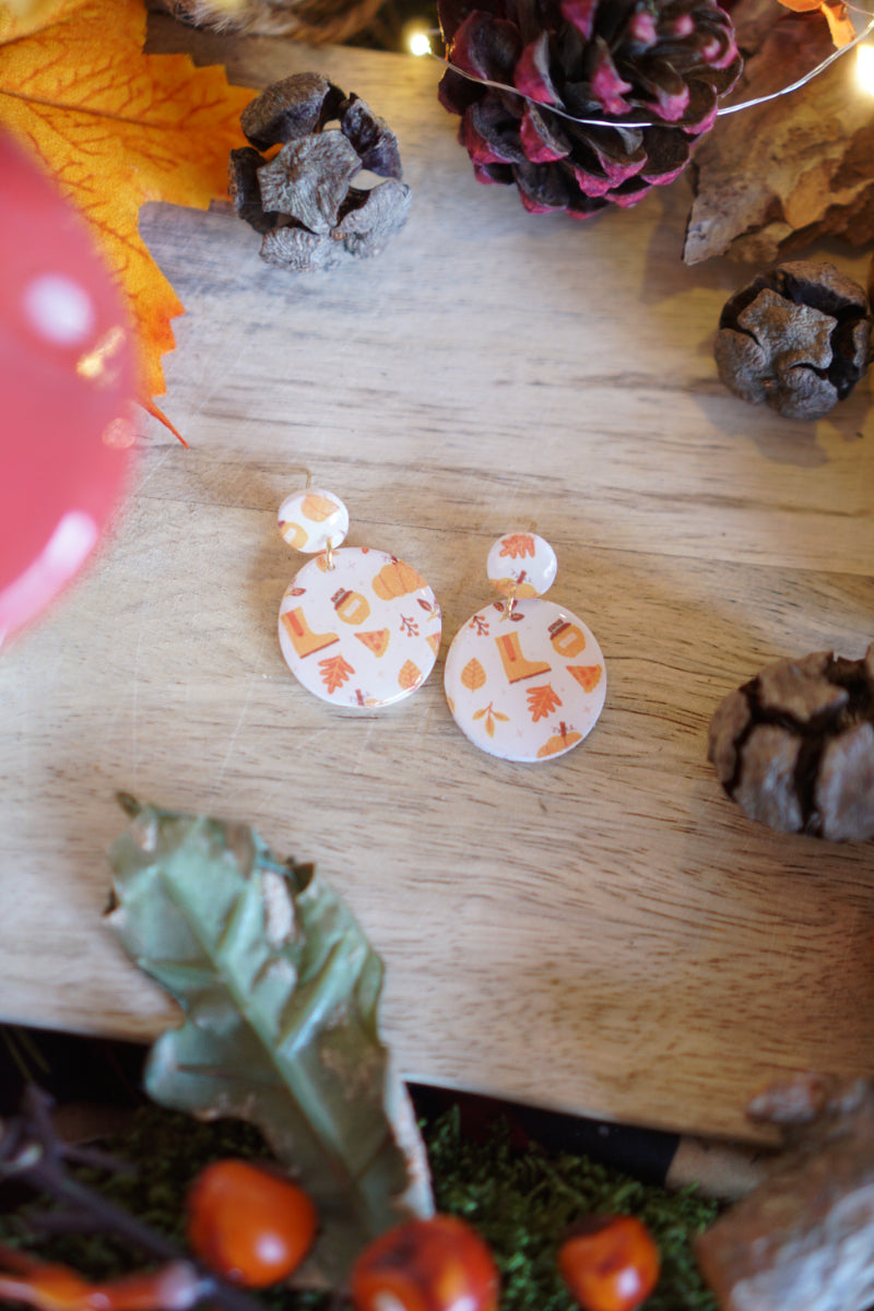 MEDIDAS aprox de la pieza de arcilla: 3cm de largo con charm. Hecho con papel de transferencia en motivos otoñales y con una capa de resina para protegerlos.
