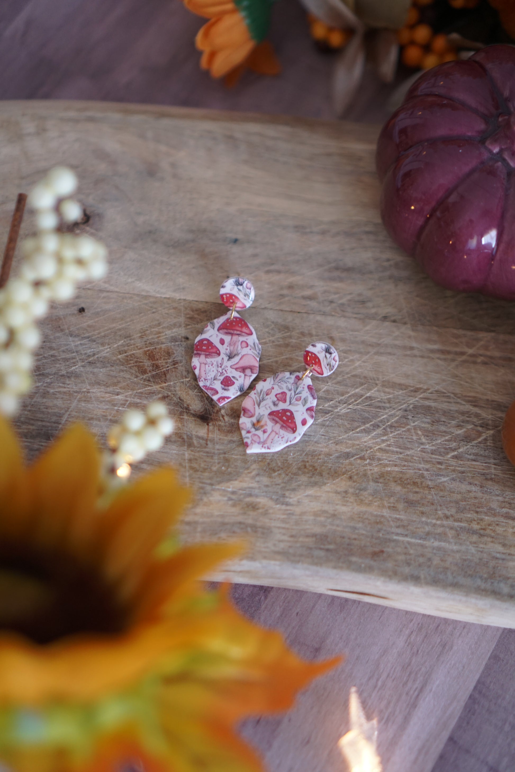 MEDIDAS aprox de la pieza de arcilla: 4. Hecho con papel de transferencia en motivos otoñales y con una capa de resina para protegerlos.