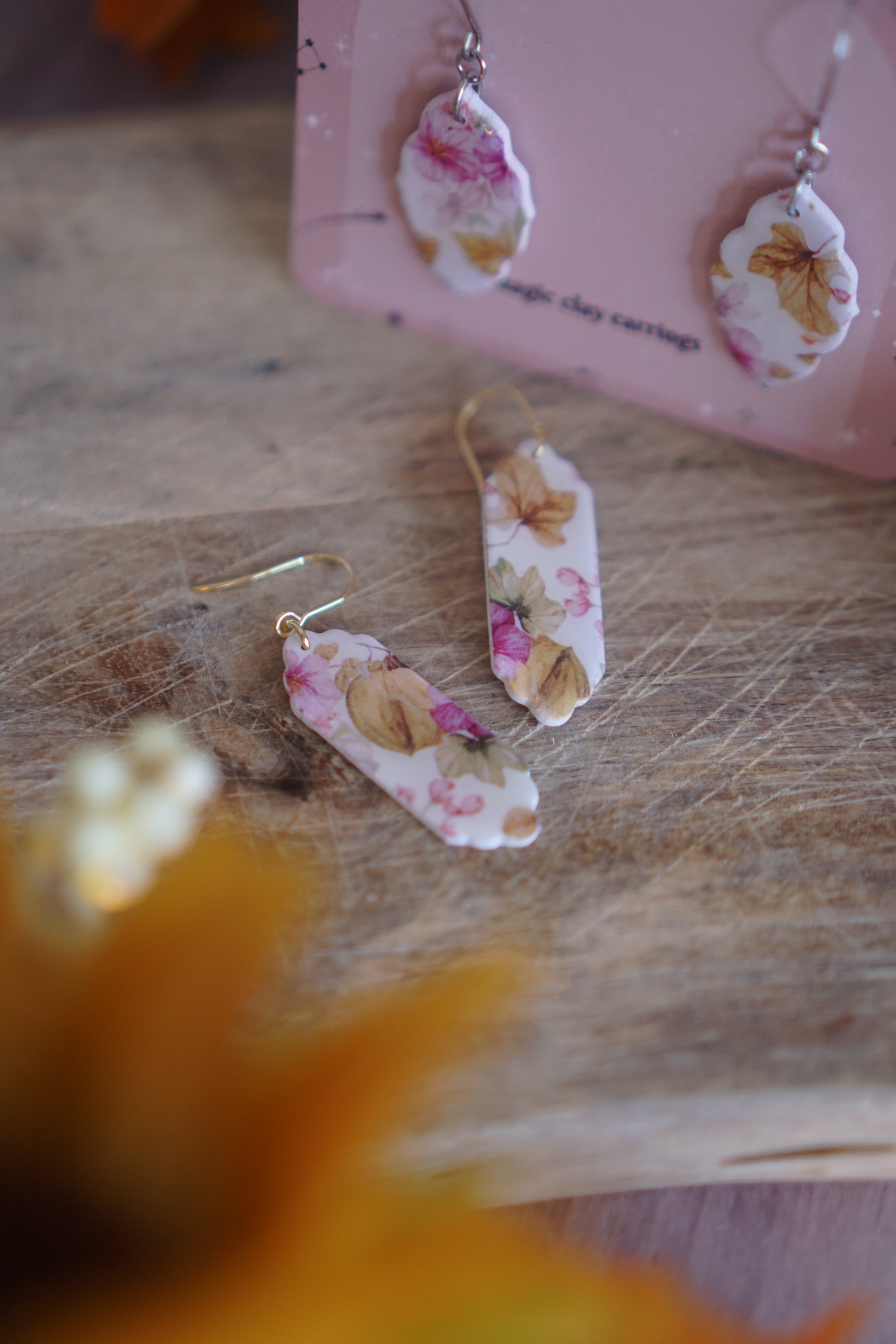 MEDIDAS aprox de la pieza de arcilla: 3 cm. Hecho con papel de transferencia en motivos otoñales y con una capa de resina para protegerlos.
